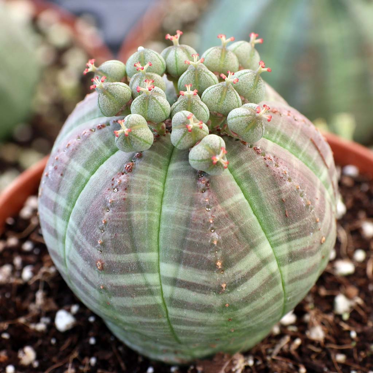 The plant prefers bright indirect light, infrequent watering, and a well-draining substrate. It pairs beautifully with other succulents in group displays or as a solo specimen that draws the eye with its simplicity. Easy to care for and sculptural in appearance, Euphorbia obesa is a must-have for collectors of rare and unusual succulents.